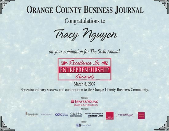 Congratulations are in order for AQP CEO and founder Tracy Nguyen. She was recently nominated by The Orange County Register for their 6th Annual Excellence in Entrepenuership Award.